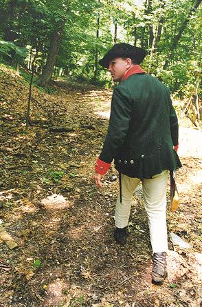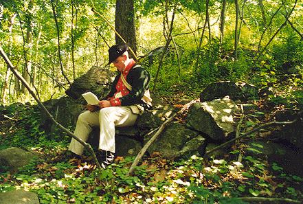 Fort Montgomery, NY: The First "Gasm"A few years ago, members of the Loyal American Regiment attempted their first "Rev. War-gasm." This comically vulgar term was inspired by the "Civil War-gasm" made famous in the best selling book Confederates in the Attic. Some of us liked the concept and have hijacked it, adapting it to our preferred time period. For us, a Rev. War-gasm is a "period rush" created by carefully studying the actual history through primary sources, putting on our 18th century Loyal American Regiment clothing, walking on the very ground where our regiment fought and letting our imaginations run wild. With any luck, the Revolutionary War becomes much more than accounts in books. Our first stop was along the Hudson River at Fort Montgomery, NY. Here, the Loyal American Regiment (and more specifically Captain Joshua Barnes' Company -- the company we portray) took part in a successful assault on the rebel fortress in the late afternoon of October 6, 1777. Using a period map, we searched the few remaining stones which mark the foundations and discovered the location where Captain Joshua Barnes' Company entered the fort. As we stood upon the stones with our muskets in our hands, it was remarkable to reflect upon the fact that we were standing where they stood. We imagined the noise, the smoke, the chaos of the battle. For anyone else passing this spot, it is an unexceptional patch of woods beside a road. To us, it is something different. The earth called out to us and we listened. Yes, it was a "period rush."